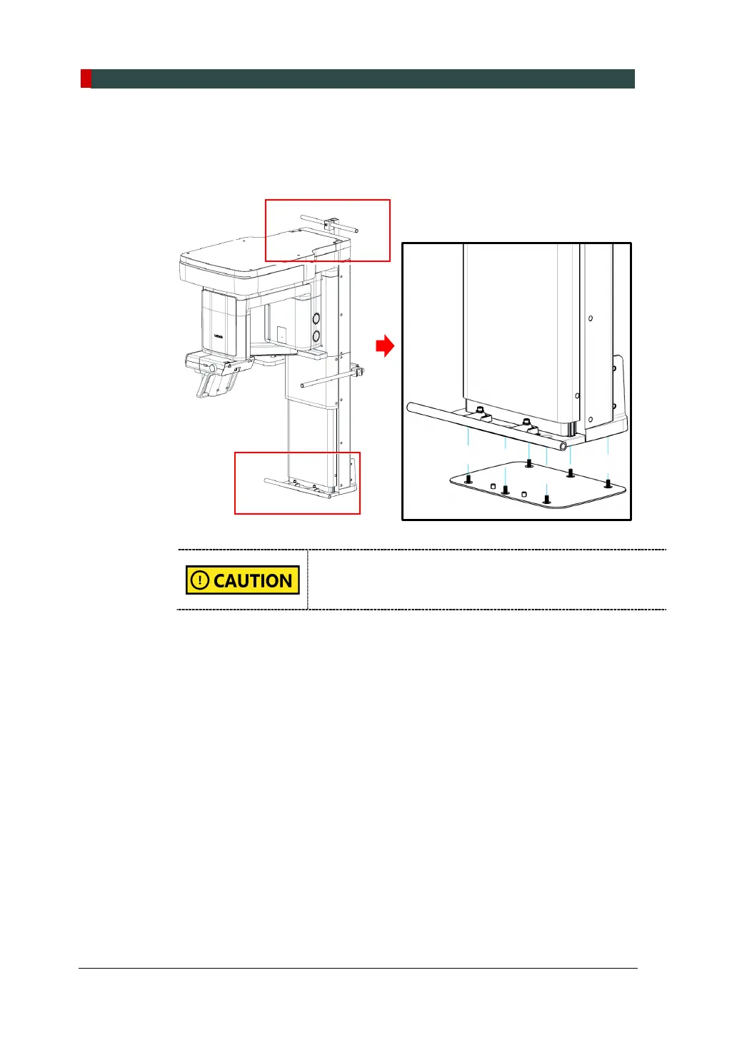 7. Hold the upper carrying handle and place the equipment on the alignment