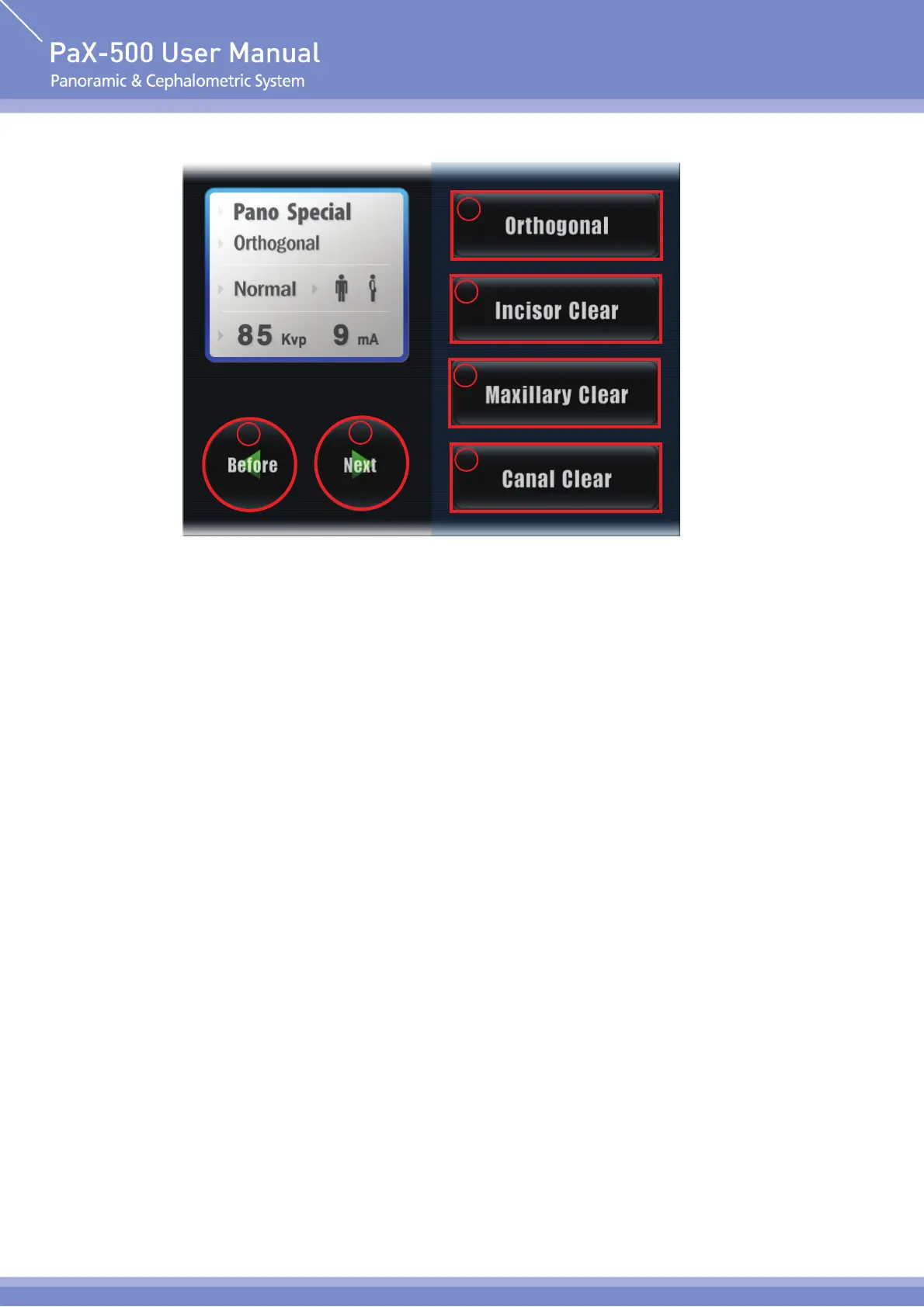 Go to the previous stage. Select "Before" to cancel the current setting value.