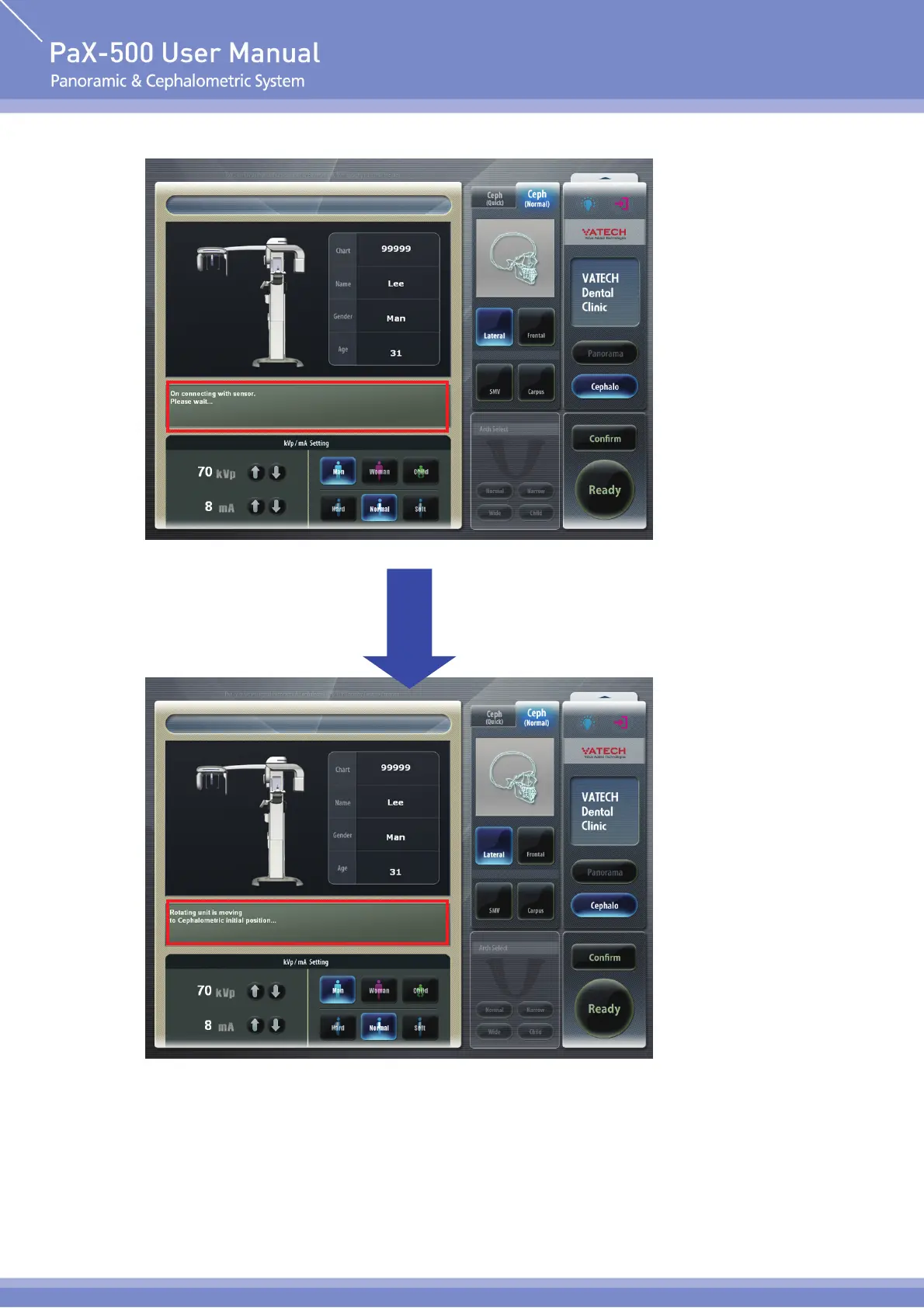 After choosing ‘Cephalo’, system will change the imaging mode to Cephalometric mode.