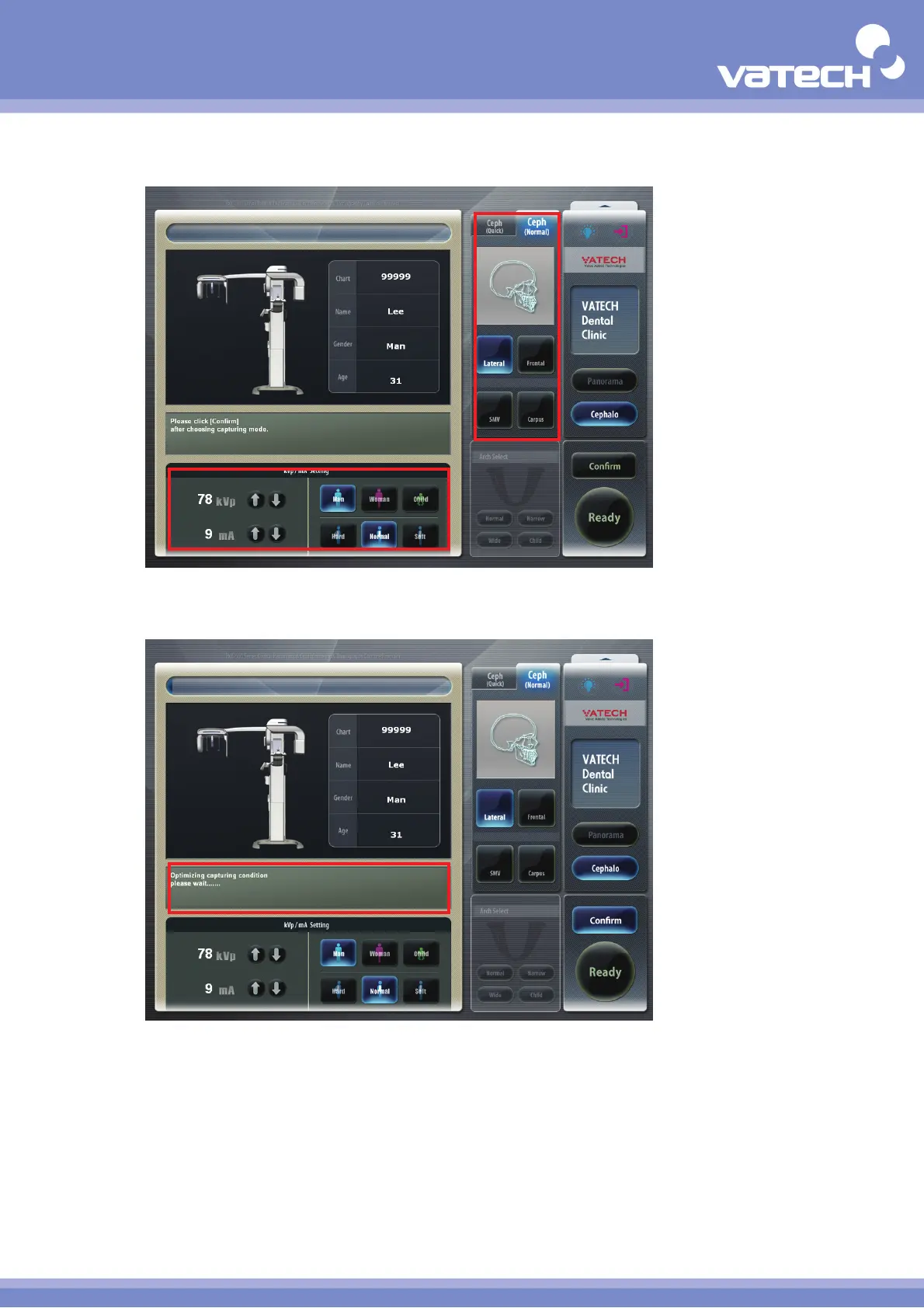 -. The settings of X-ray, Gender and Bone density, cephalometric capturing mode.