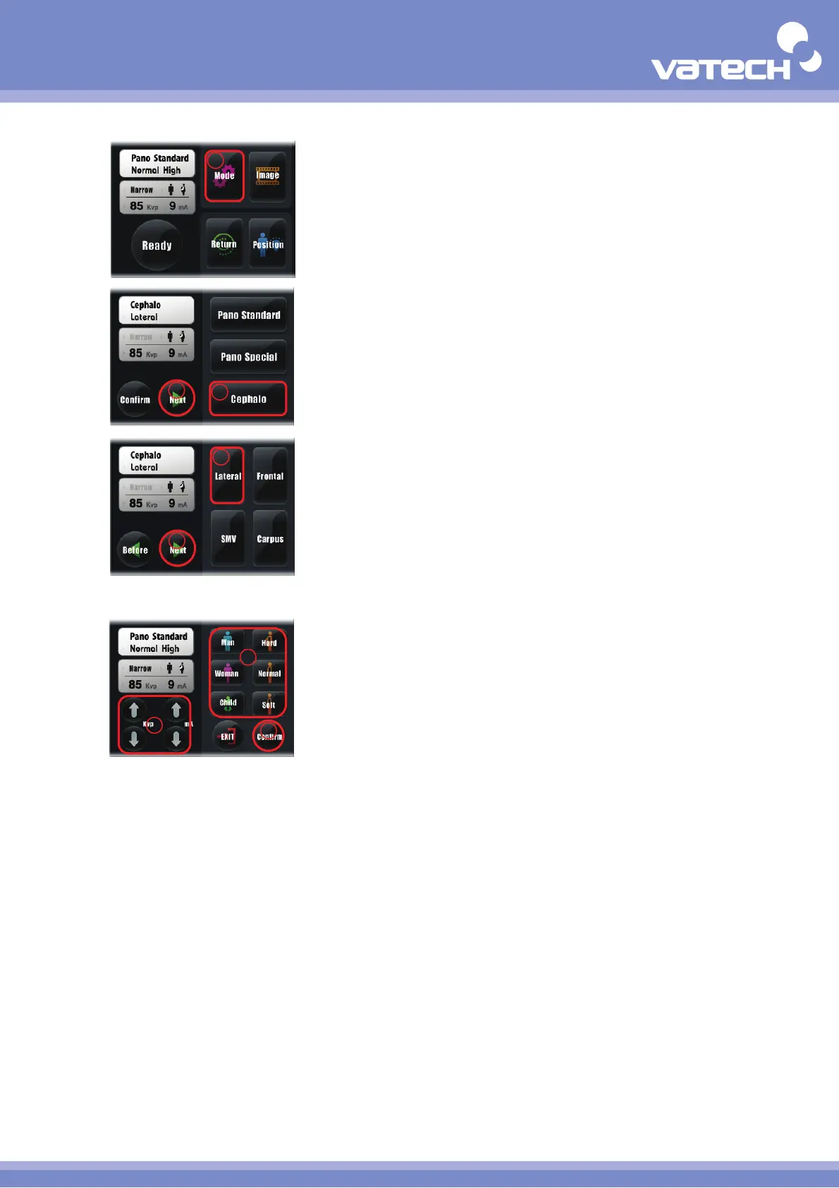⑦ Select Kvp / mA : Directly select the X-ray exposure amount suitable