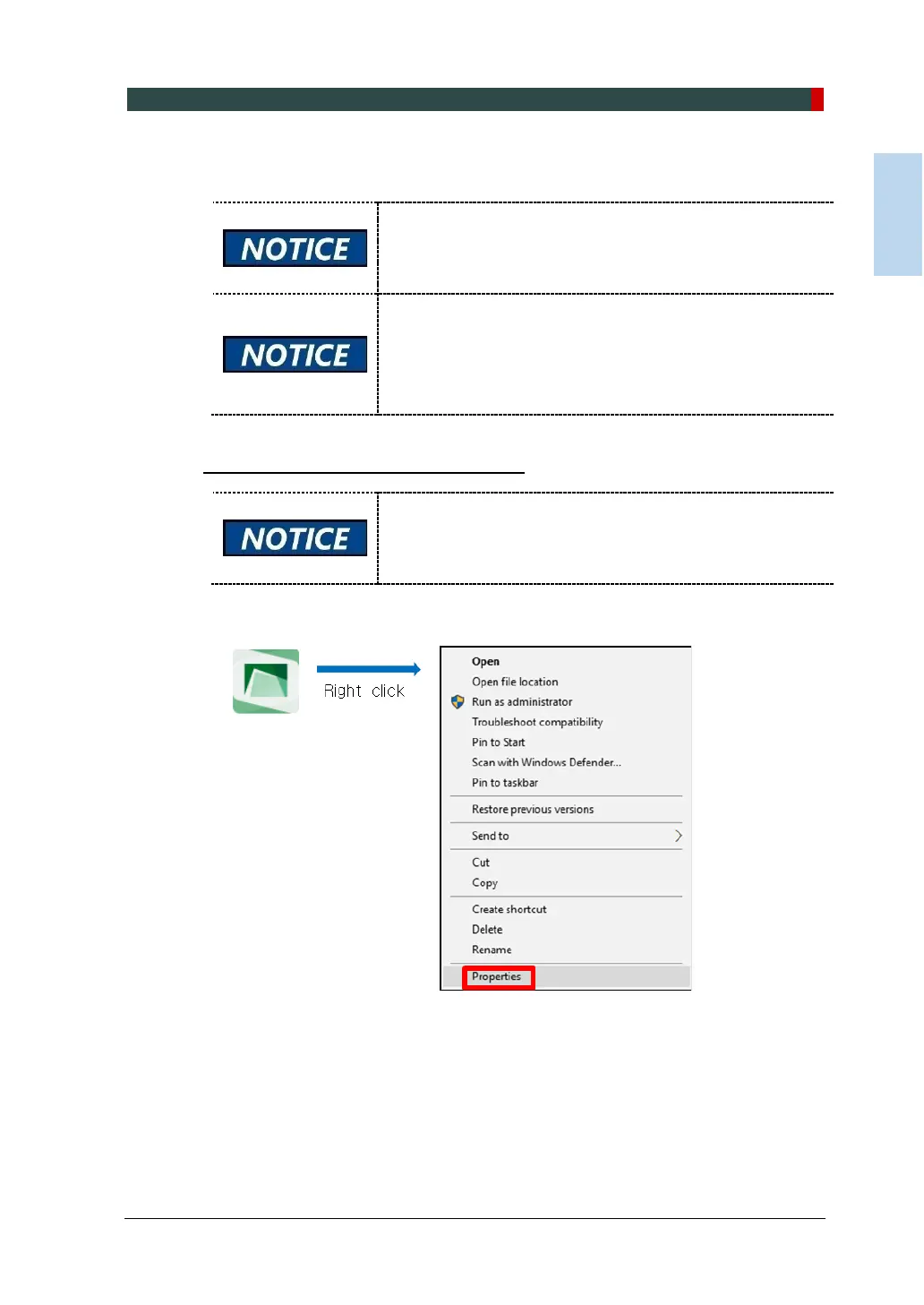 Configure the EzDent-i to run as an administrator before