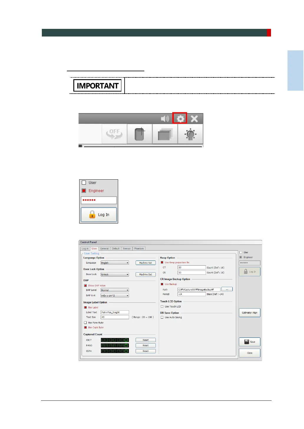1. From the main GUI window, click the settings icon in the upper right corner.