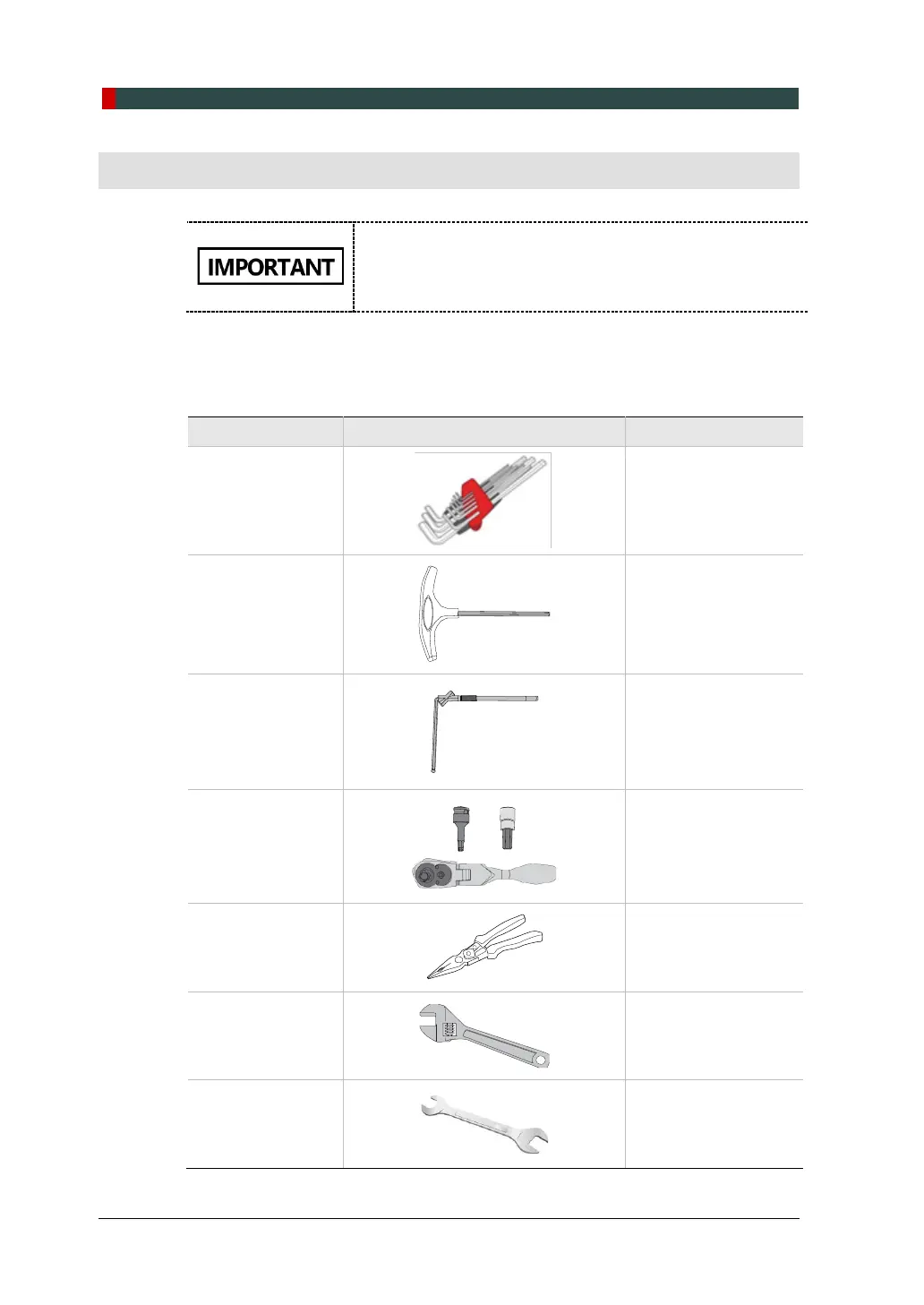 The following tools are necessary to install the PaX-i Plus / Insight.