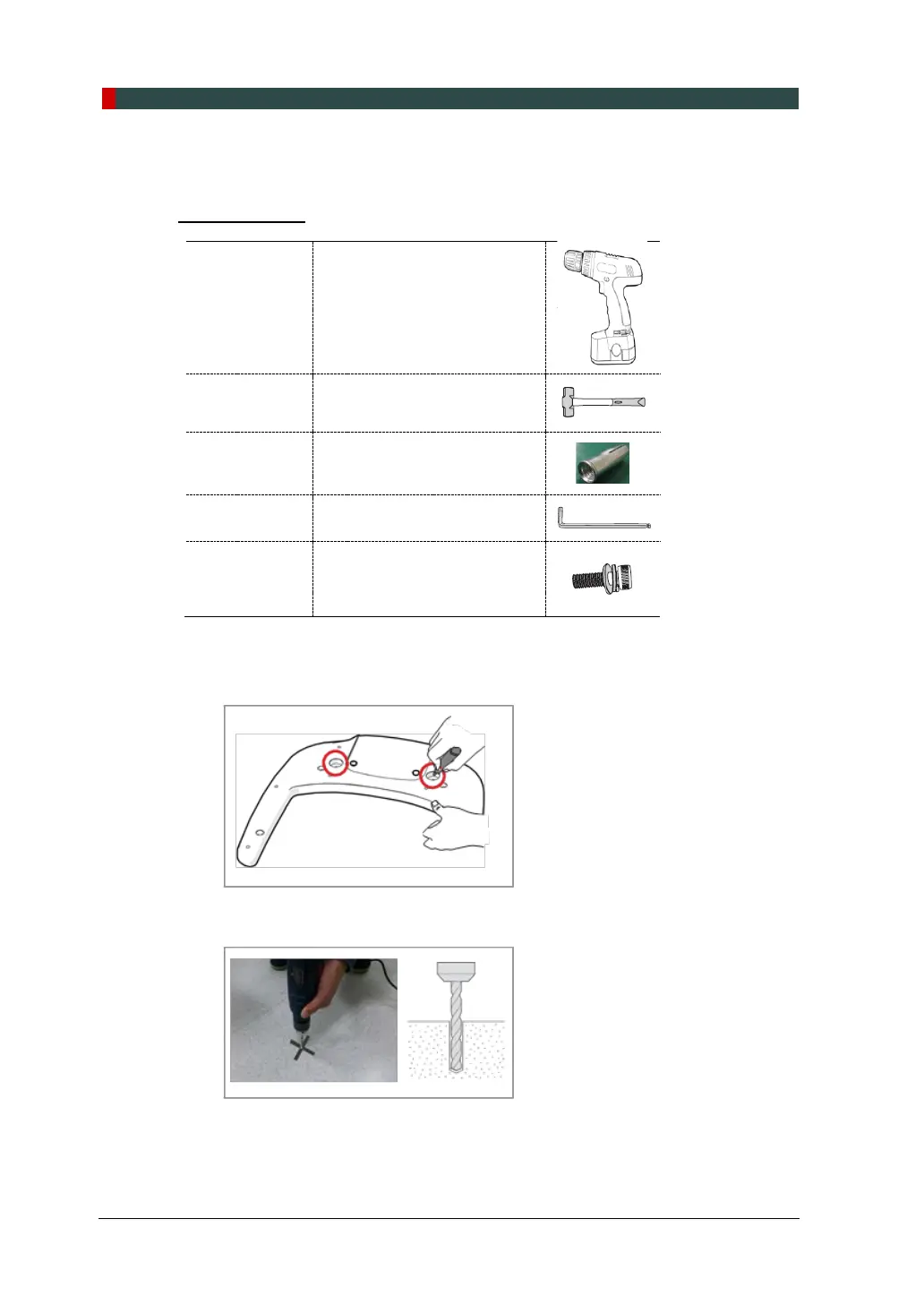 2. Drill the floor holes of size 12mm x 30mm (depth) using the concrete hammer