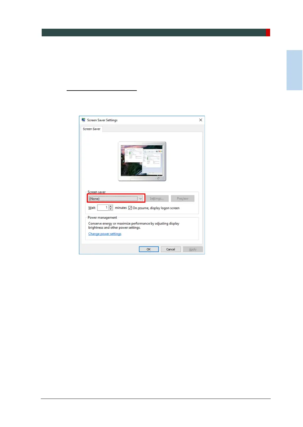 2. On-Screen Saver Settings screen, select (None) in the pull-down menu.