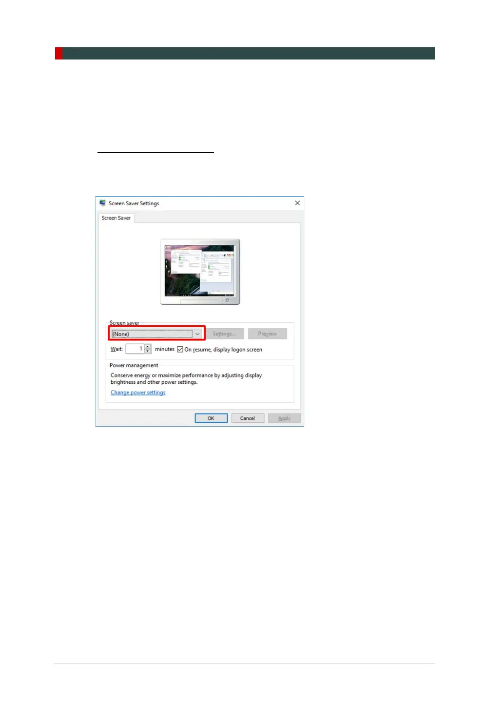 2. On Screen Saver Settings screen, select (None) in the pull-down menu.