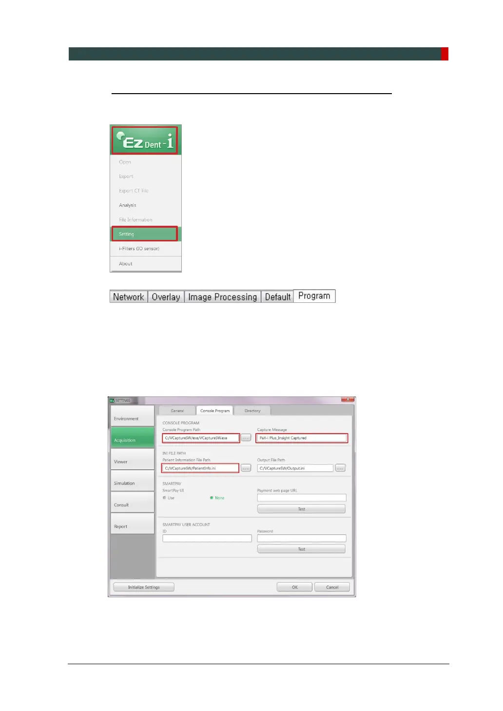 1. From the main screen of EzDent-i, click EzDent-i > Setting.