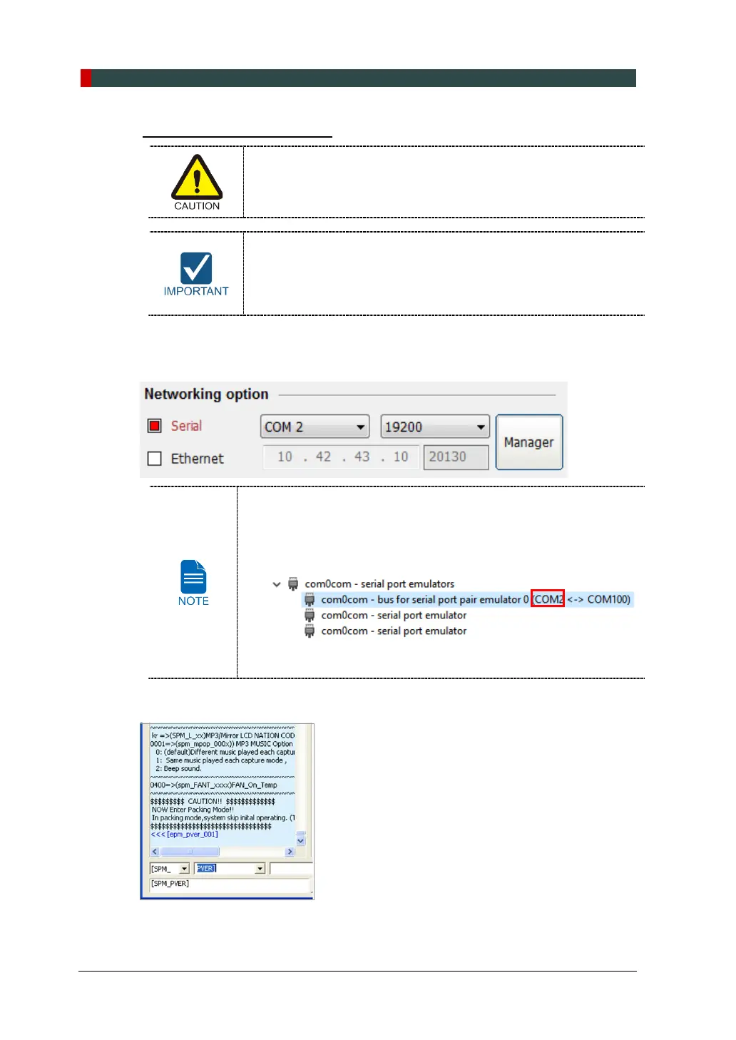 2. In the Networking option, select Serial checkbox and set Serial port and baud