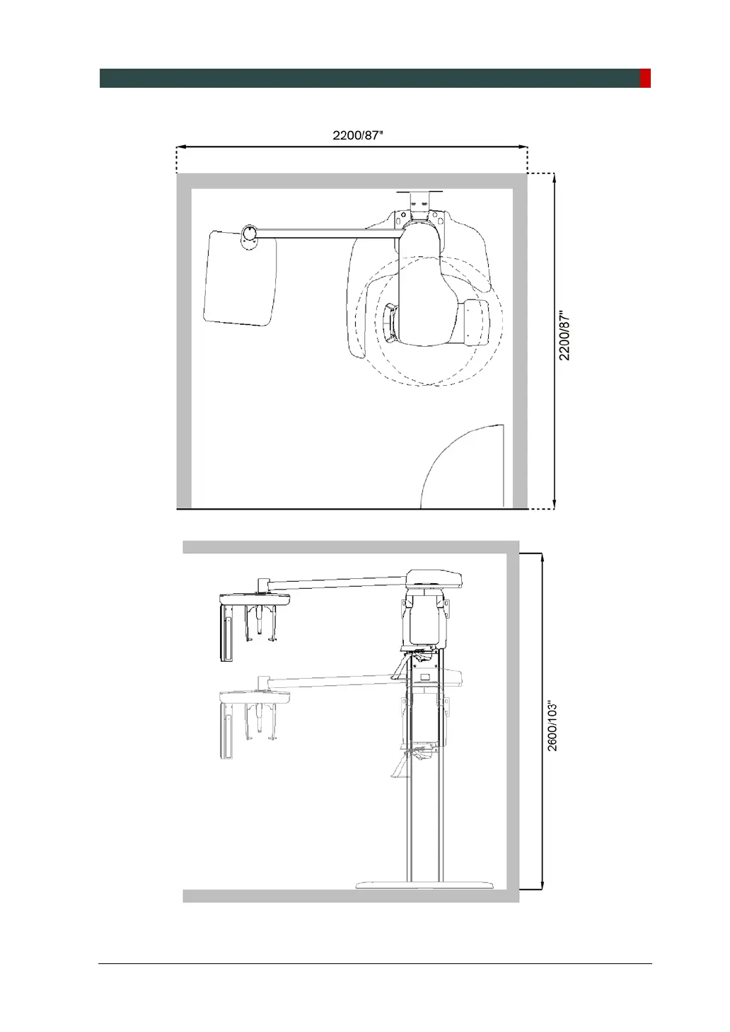 <With CEPH Unit (optional): 2,200 (L) x 2,200 mm (W) or wider >