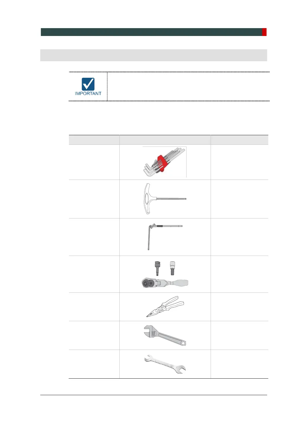The following tools are necessary to install the PaX-i Plus / Insight.