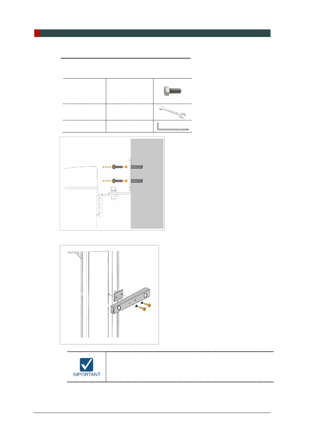 1. Place the equipment properly in its position and and fix the wall bracket to the wall