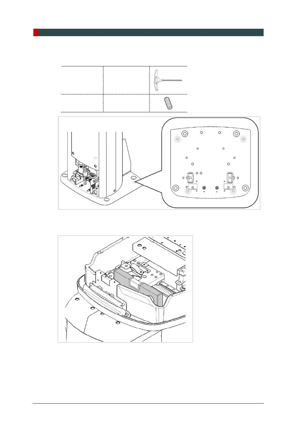 4. Put the set screws into the four holes and turn them clockwise with the hex wrench until