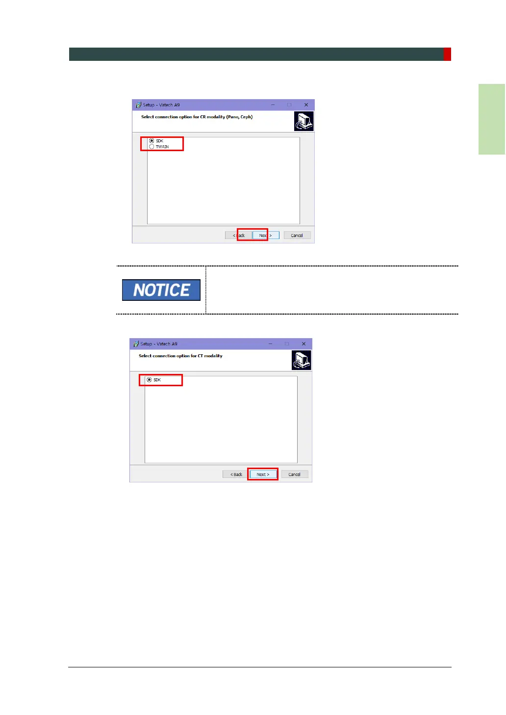11. Select the connection option for CBCT modality and click Next to continue.