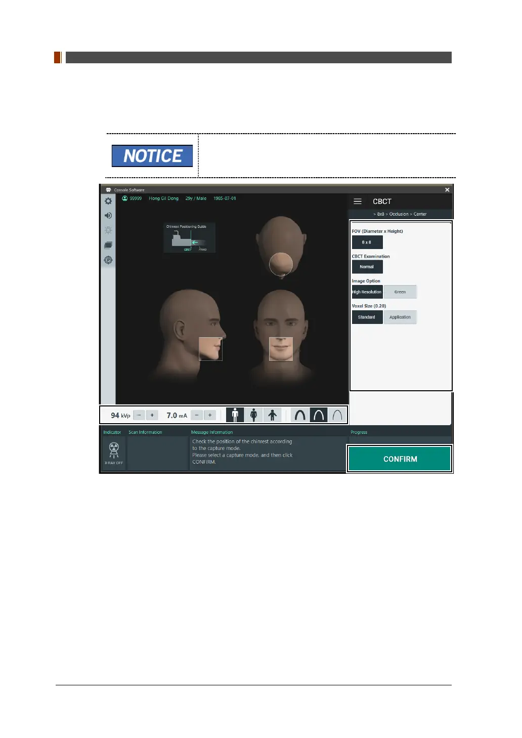 To acquire CBCT Images, 6. Getting Started must be completed first.