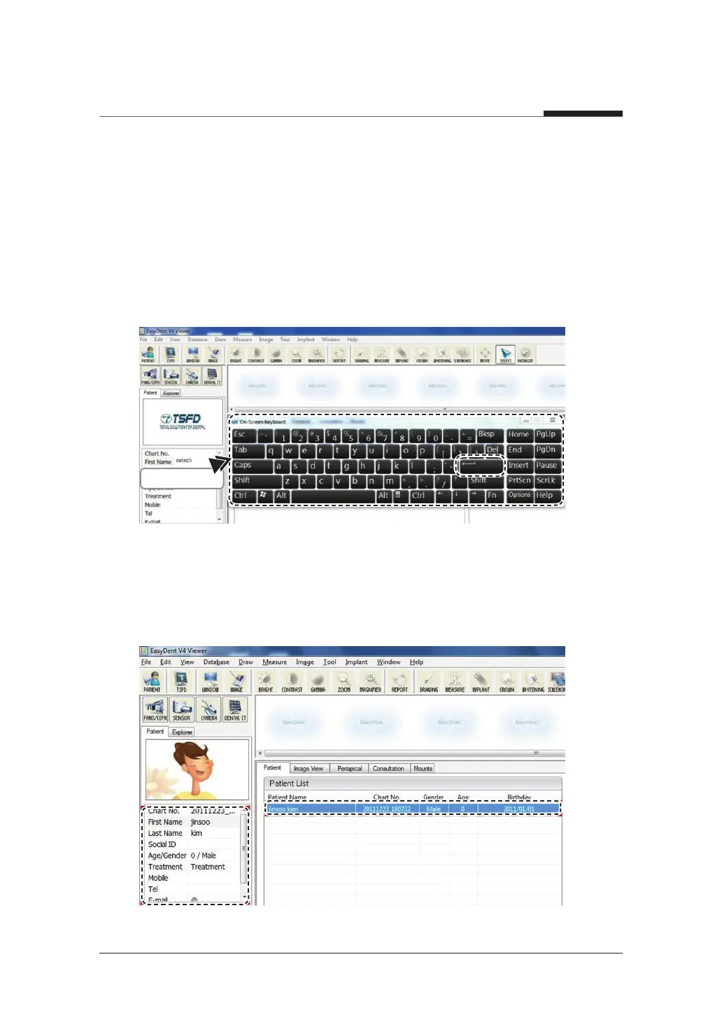 name of the patient and the virtual keyboard will pop up.