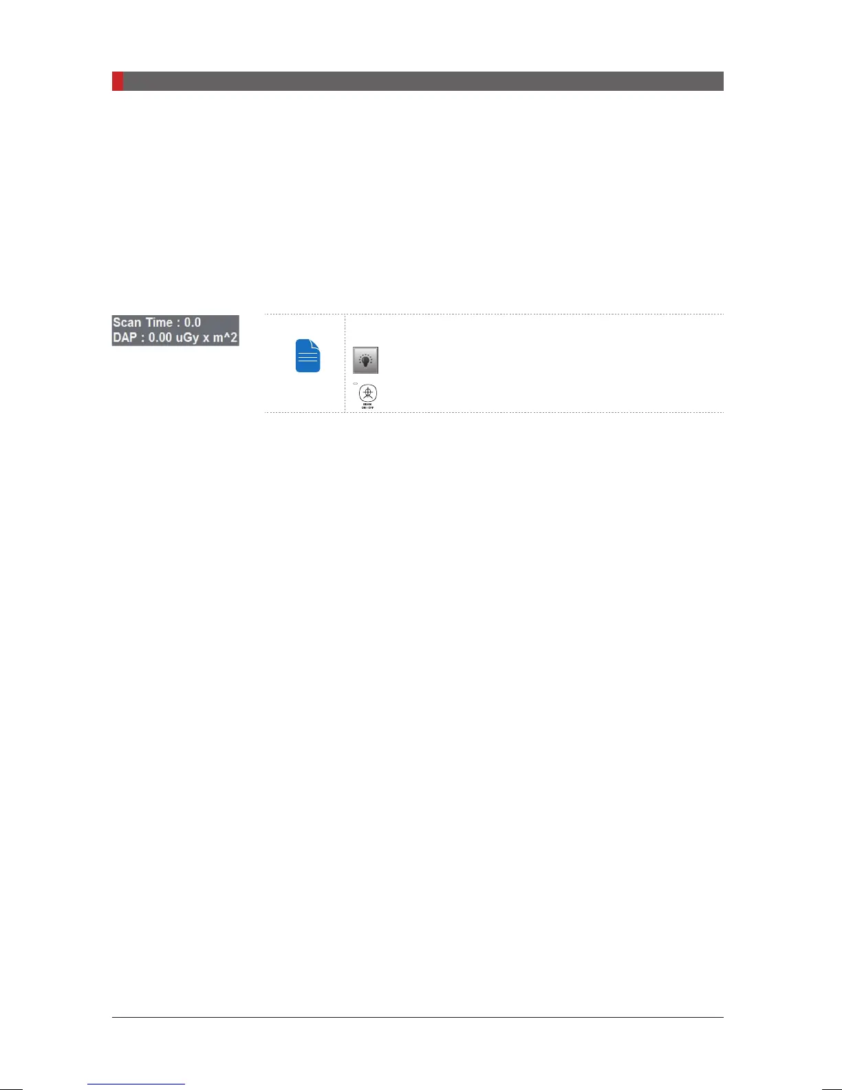 The scan time and DAP (Dose Area Product) values will be shown on the main