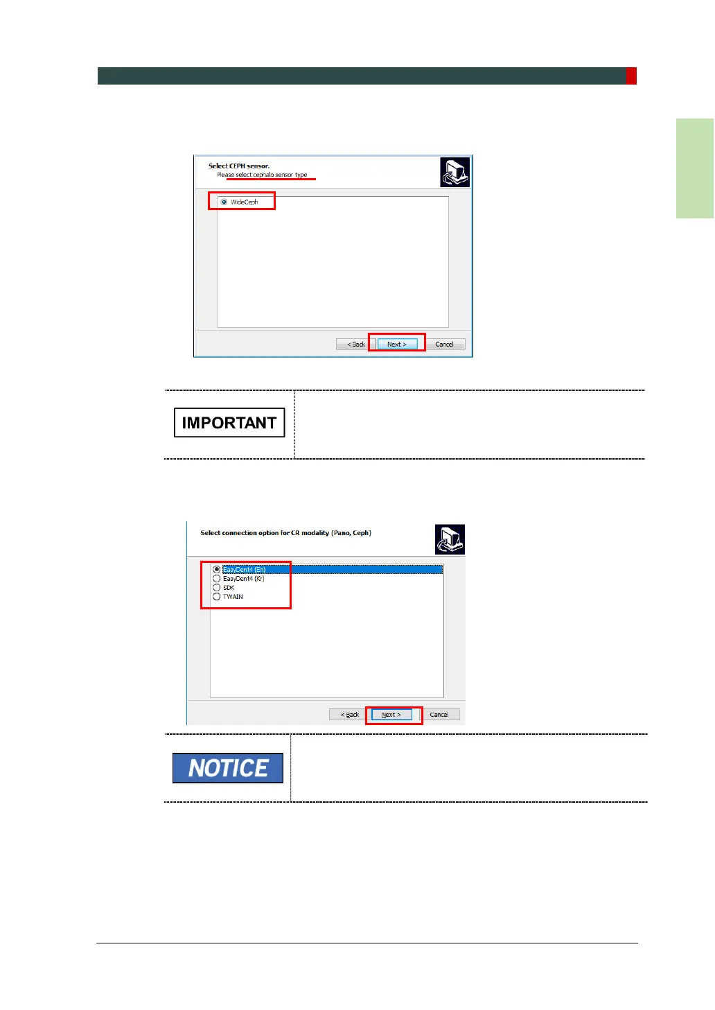 12. Select the connection for CR modality (Pano, Ceph) and click Next to continue.