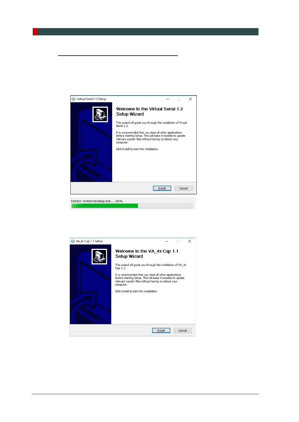 2. During installation, VA_4x Cap 1.1 installation wizard will appear. Click Install to