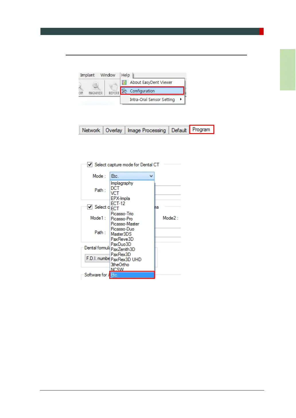 3. Check Select capture mode for Dental CT’ and select ‘Etc.’ from the drop-down