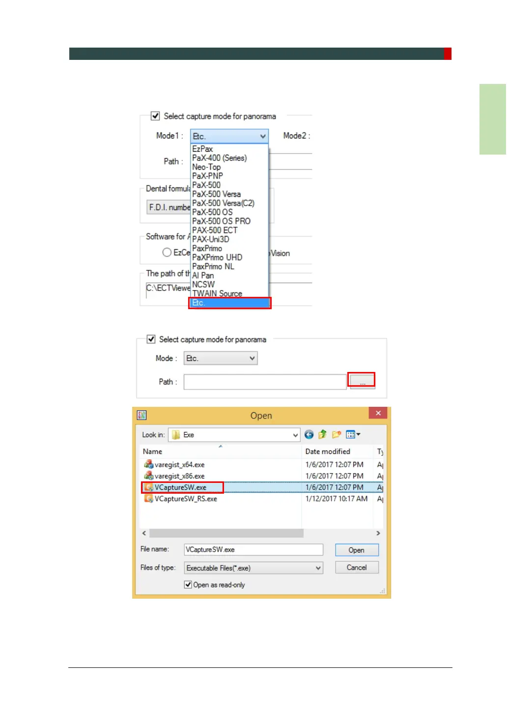 6. Check Select capture mode for panoramaand select ‘Etc.’ from the drop-down