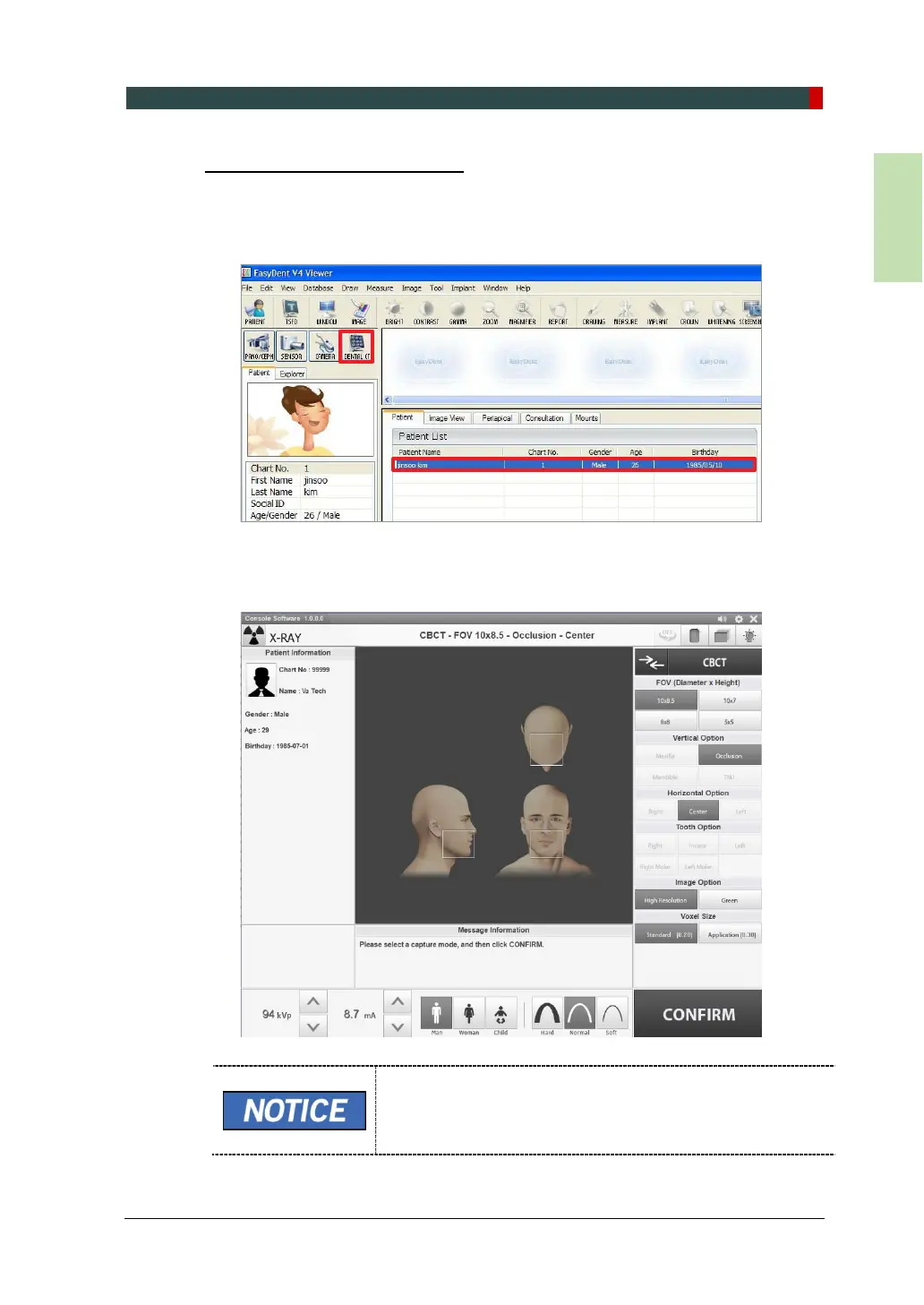 modality button on the upper left corner of EasyDent’s main window to open the