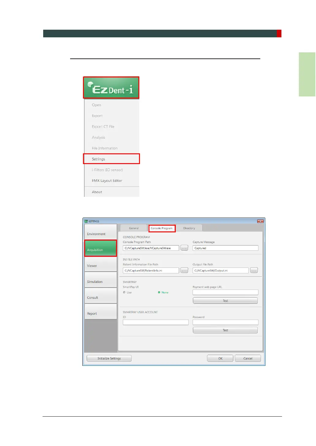 1. On the main screen of the EzDent-i, click EzDent-i Setting.