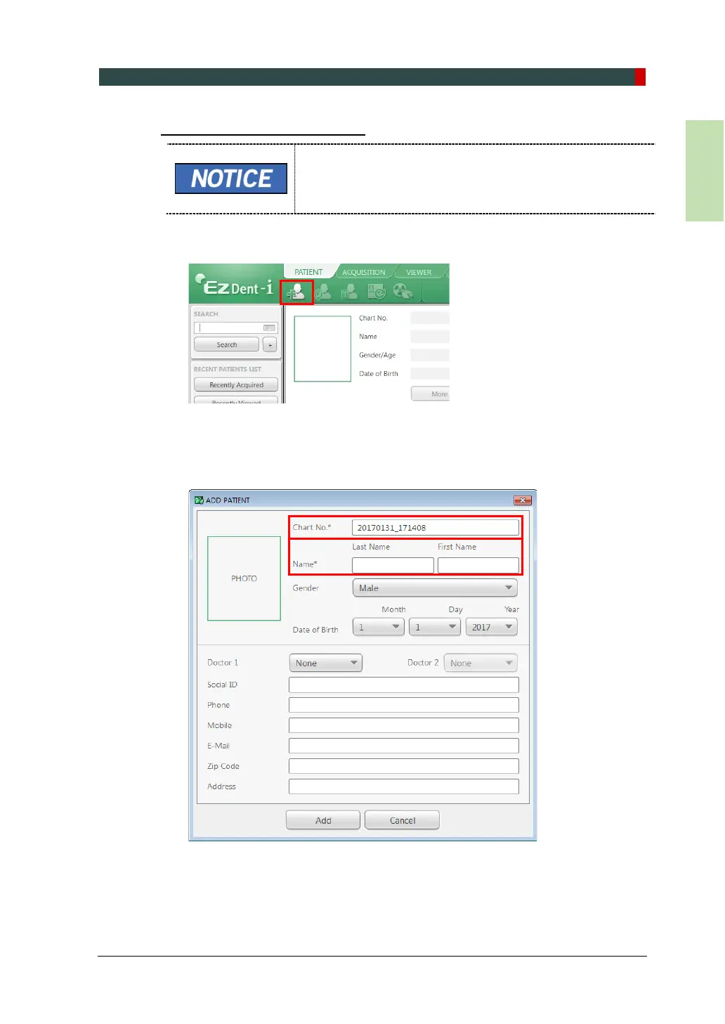 2. Enter the required patient information. Chart Number, First Name, and Last