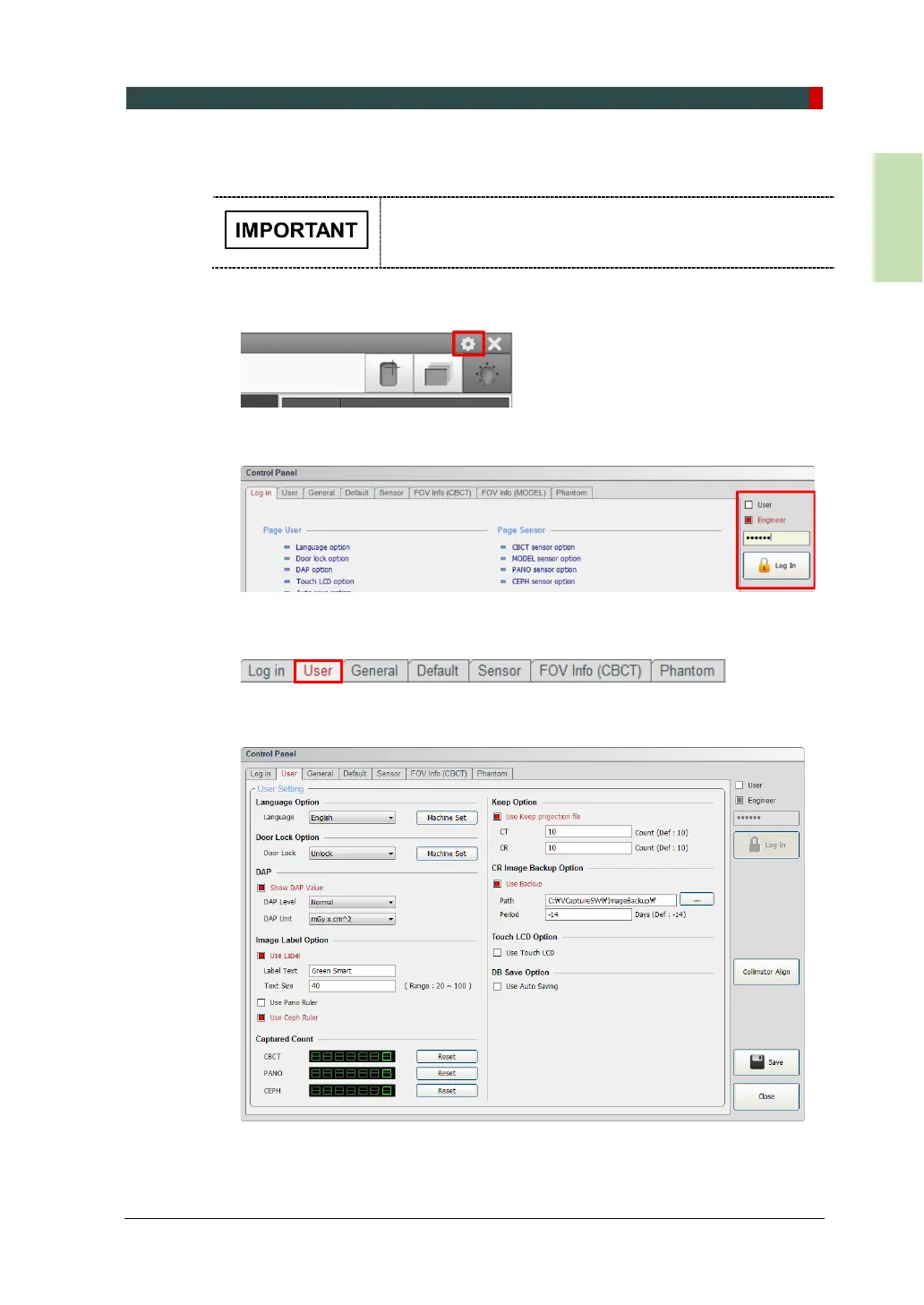 4. The User Settings are displayed as shown in the following figure.