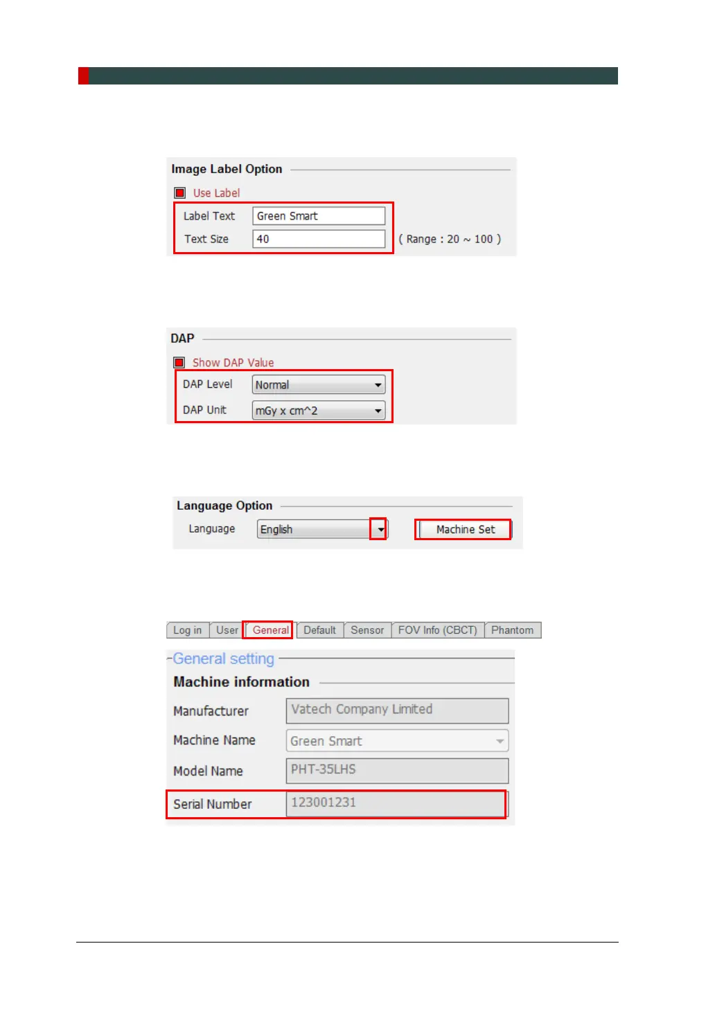 5. In the Image Label Option, check that the default equipment’s brand name and