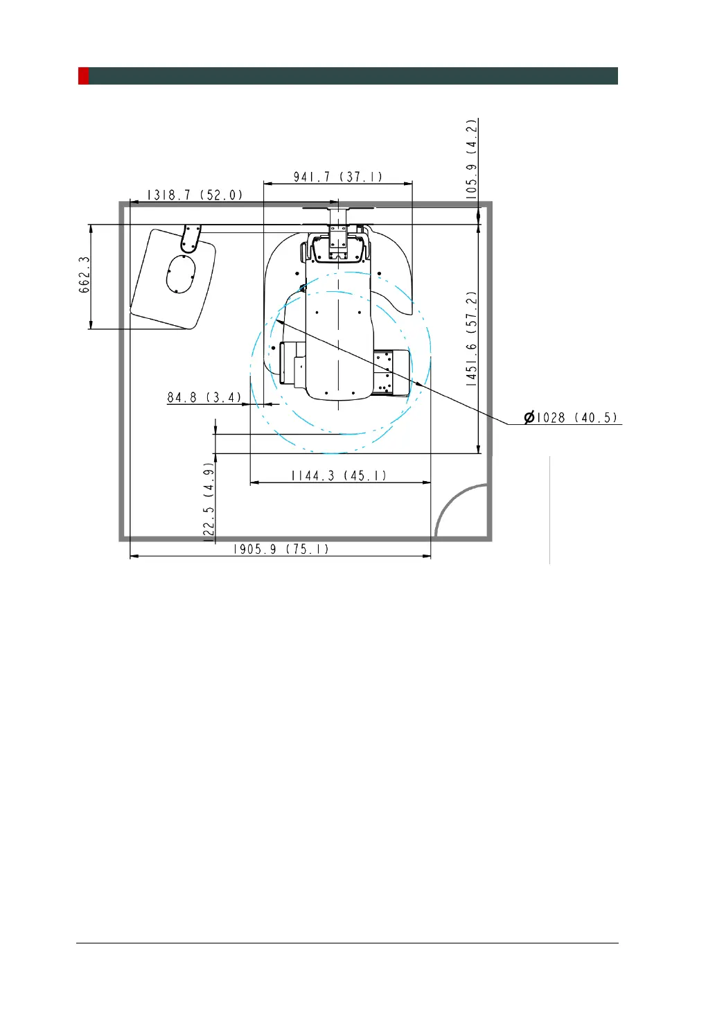 <With CEPH Unit (optional): 2805.9 mm (L) x 2,457.5 mm (W) or wider >
