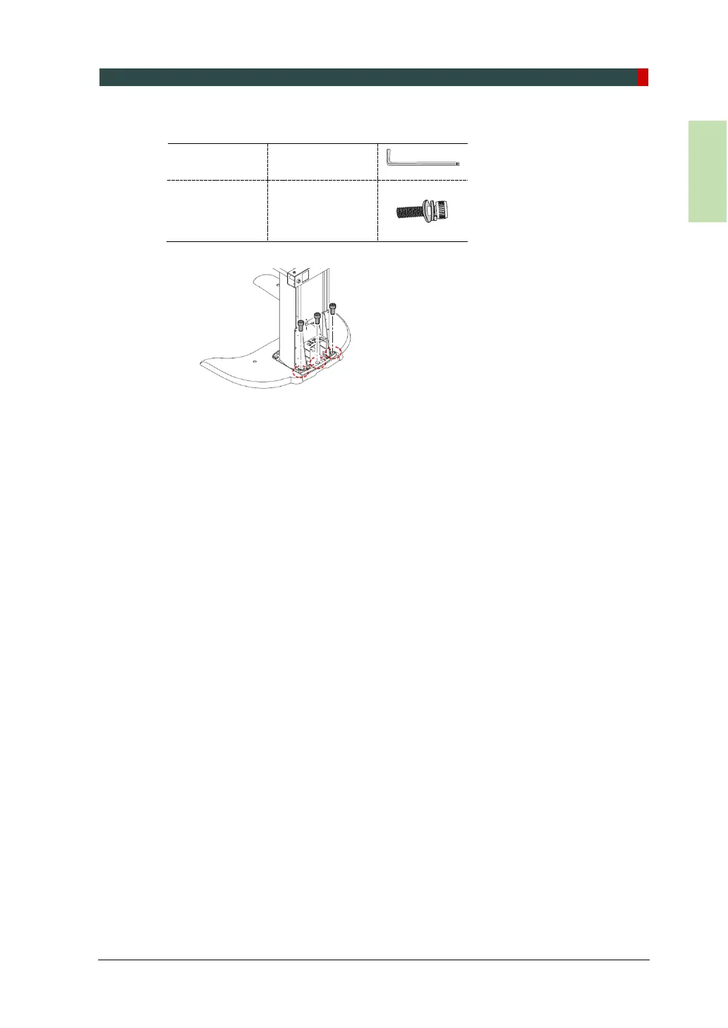 7. Tighten the three wrench bolts to attach the base unit.