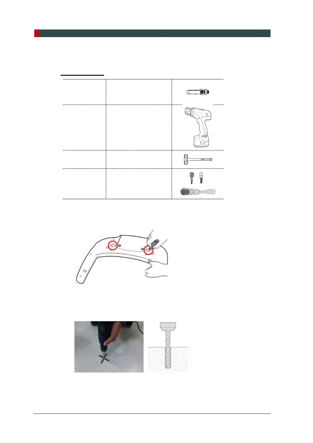 2. Drill the floor holes of size 12mm x 30mm (depth) using the concrete hammer