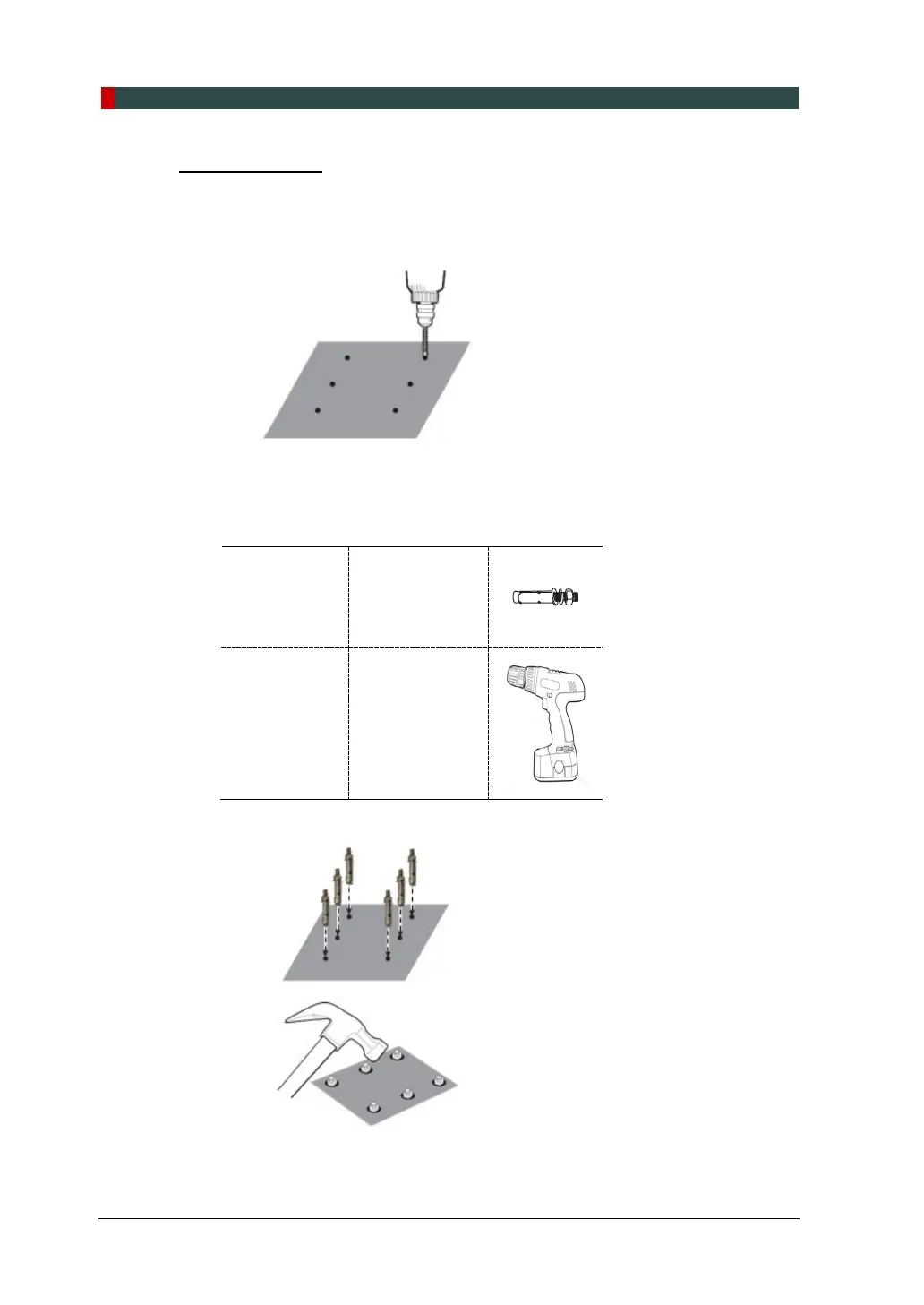 4. Put the anchor bolts into the holes and attach them with the hammer. Verify that