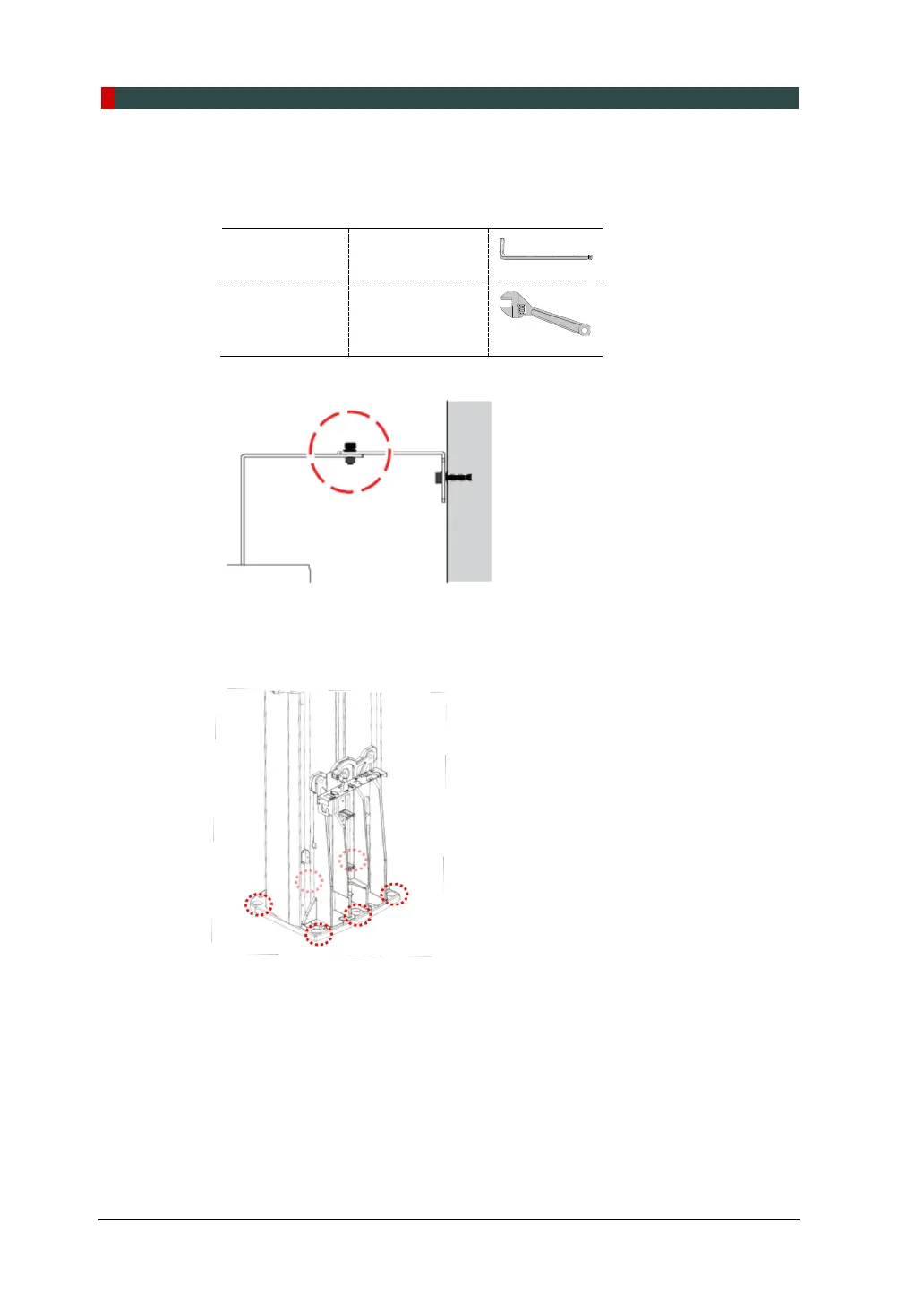 2. Tighten the nuts in the anchored bolts on the floor.