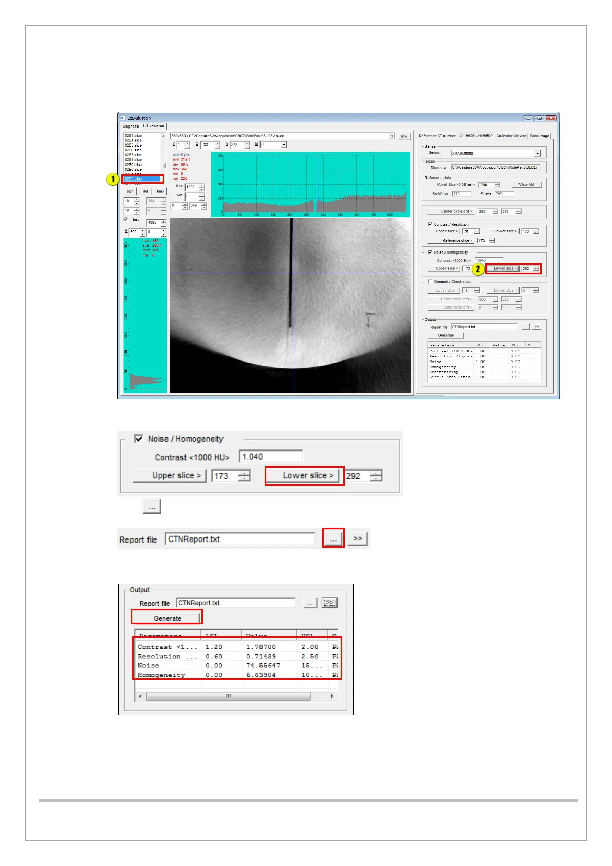 26) Click the Lower slice button under Noise / Homogeneity.