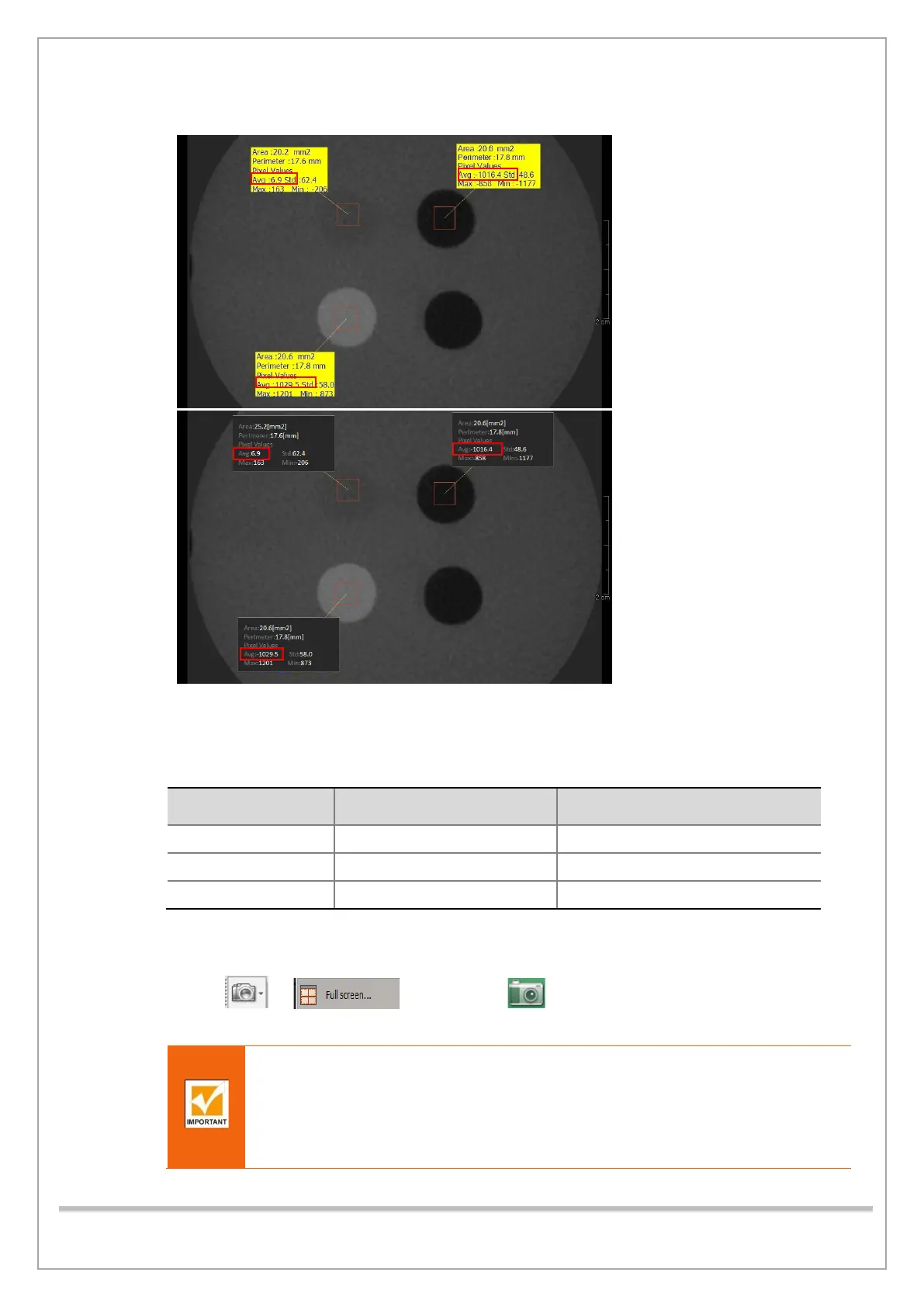 14) Record the mean CT Number of each material.