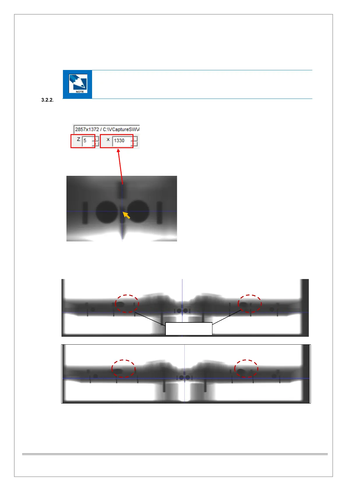 3) Make sure that the Center Pin pixel number meets the standard (within 1329-pixel line ± 10