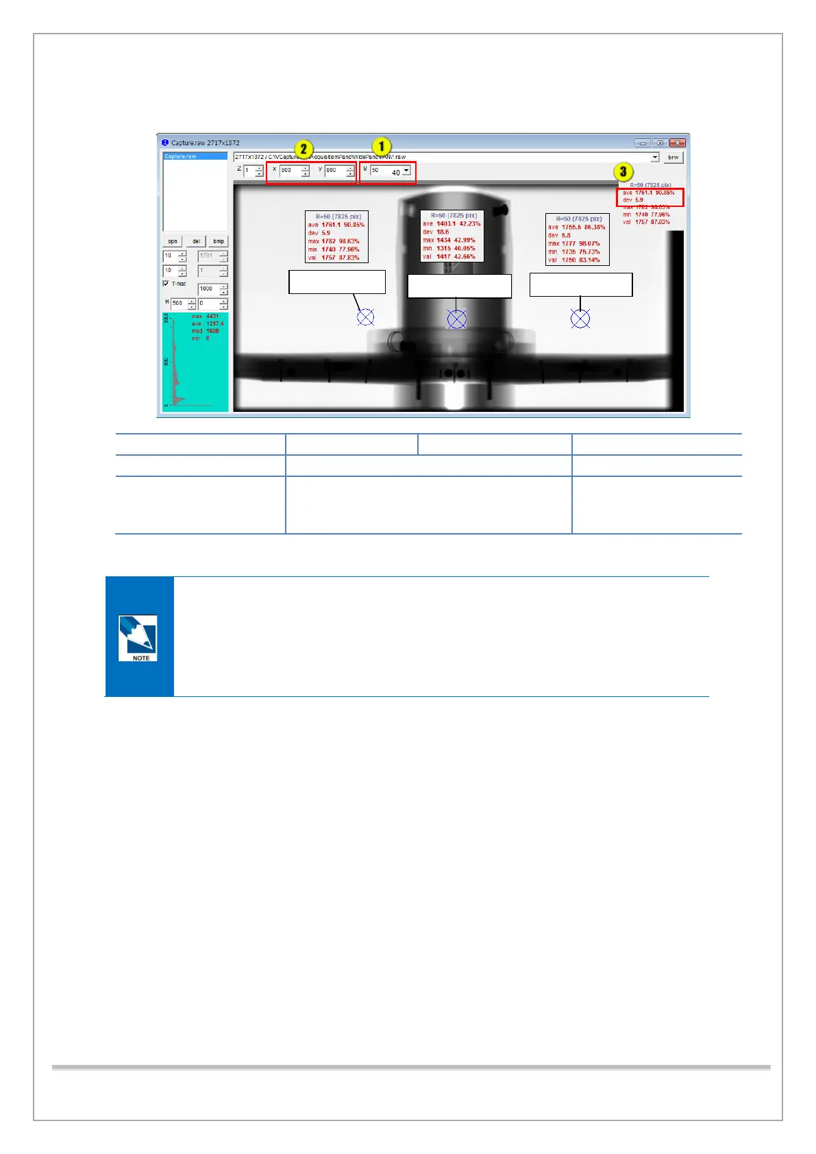 - Homogeneity(ave) ÷ Noise(dev) ≥ 100(at ROI1,2) 500(at ROI3)
