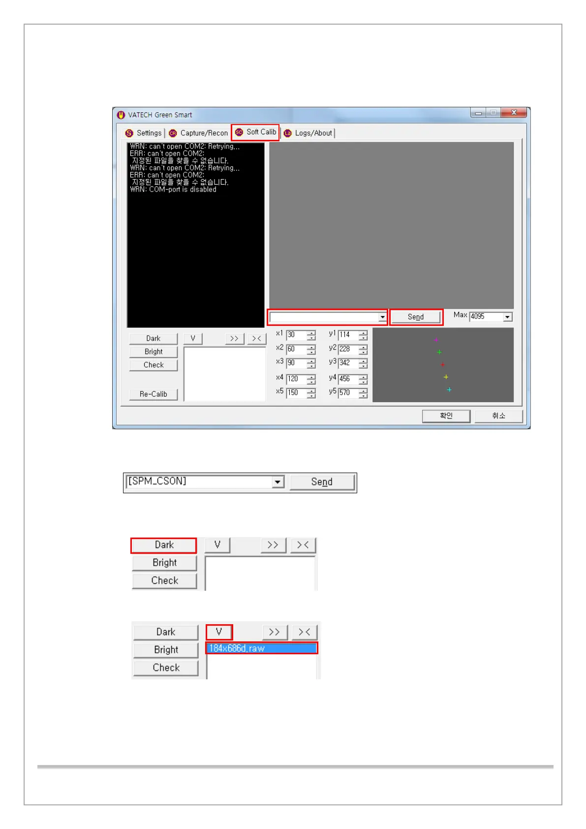 8) Click the Soft Calib tab, wait 20 seconds and click Dark to achieve the Dark Calibration data