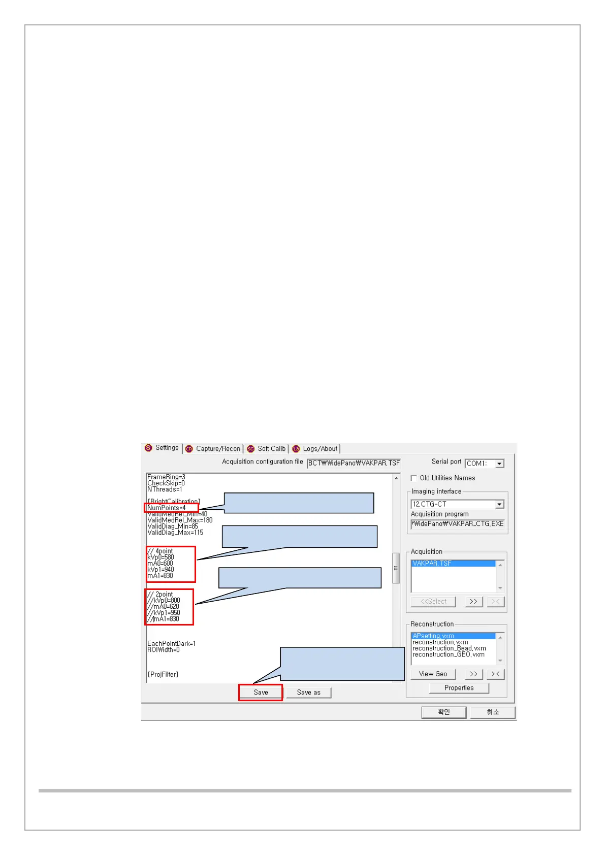 ② Adjust kVp0 value by 10 in the [BrightCalibration] field.