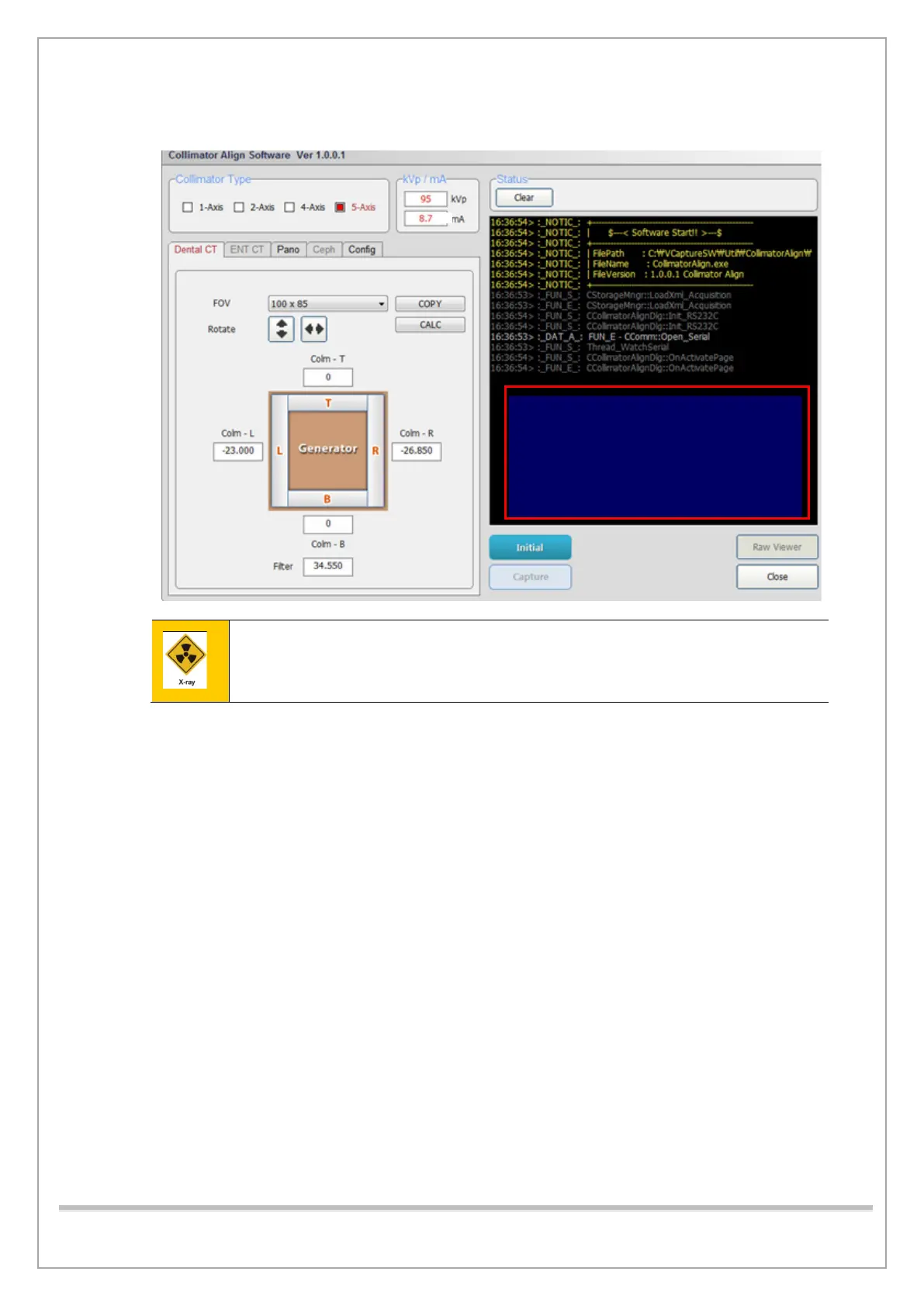 7) When the Raw Viewer window appears, release the X-ray exposure switch button.