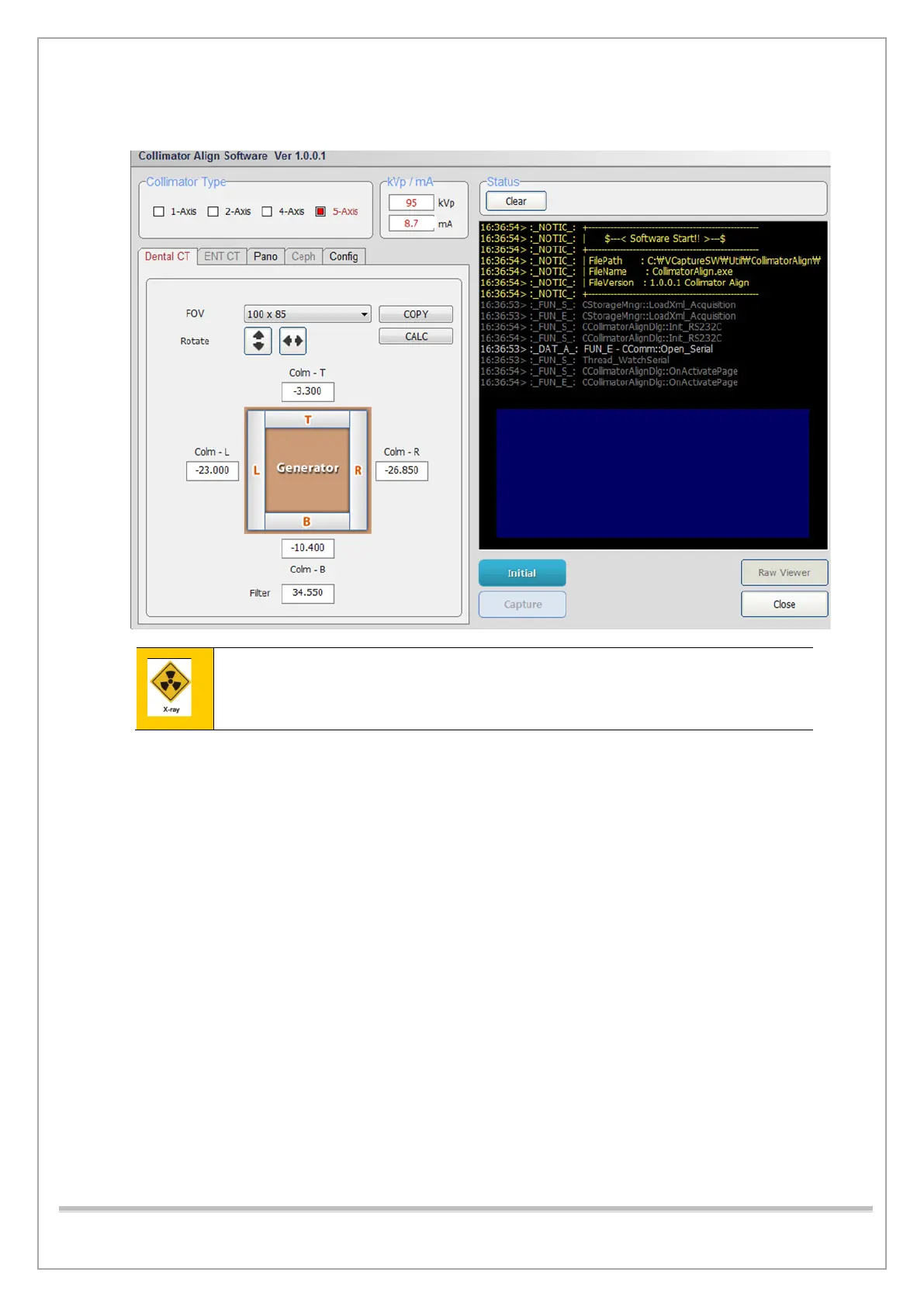 8) When the Raw Viewer window appears, release the X-ray exposure switch button.