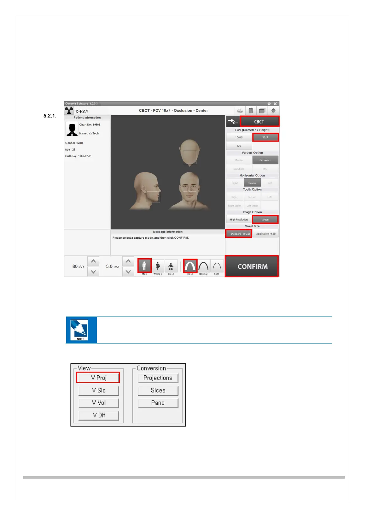 1) Run Console Software and click CBCT to go into CBCT mode.