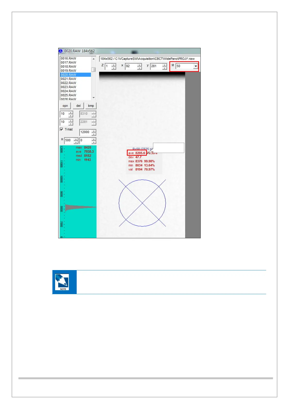 6) Select 50 in the M box and make sure that the Background level(ave) meets the standard.