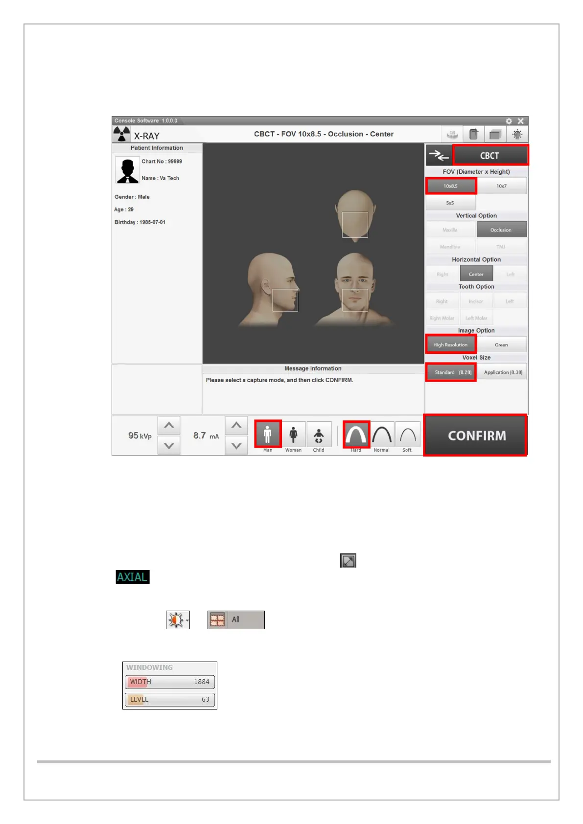 7) Run Console Software and click CBCT to go into CBCT mode.