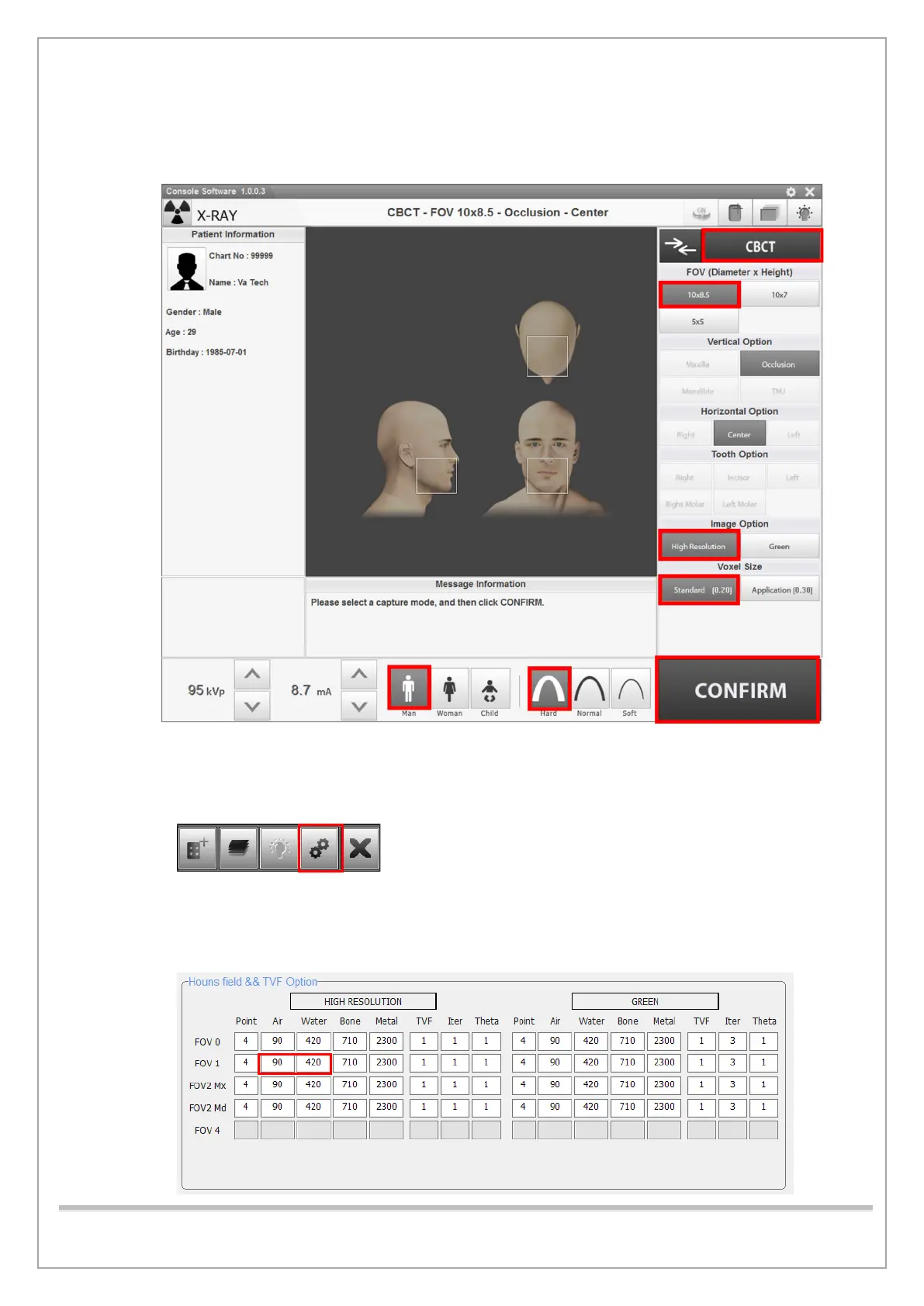 7) Run Console Software and click CBCT to go into CBCT mode.