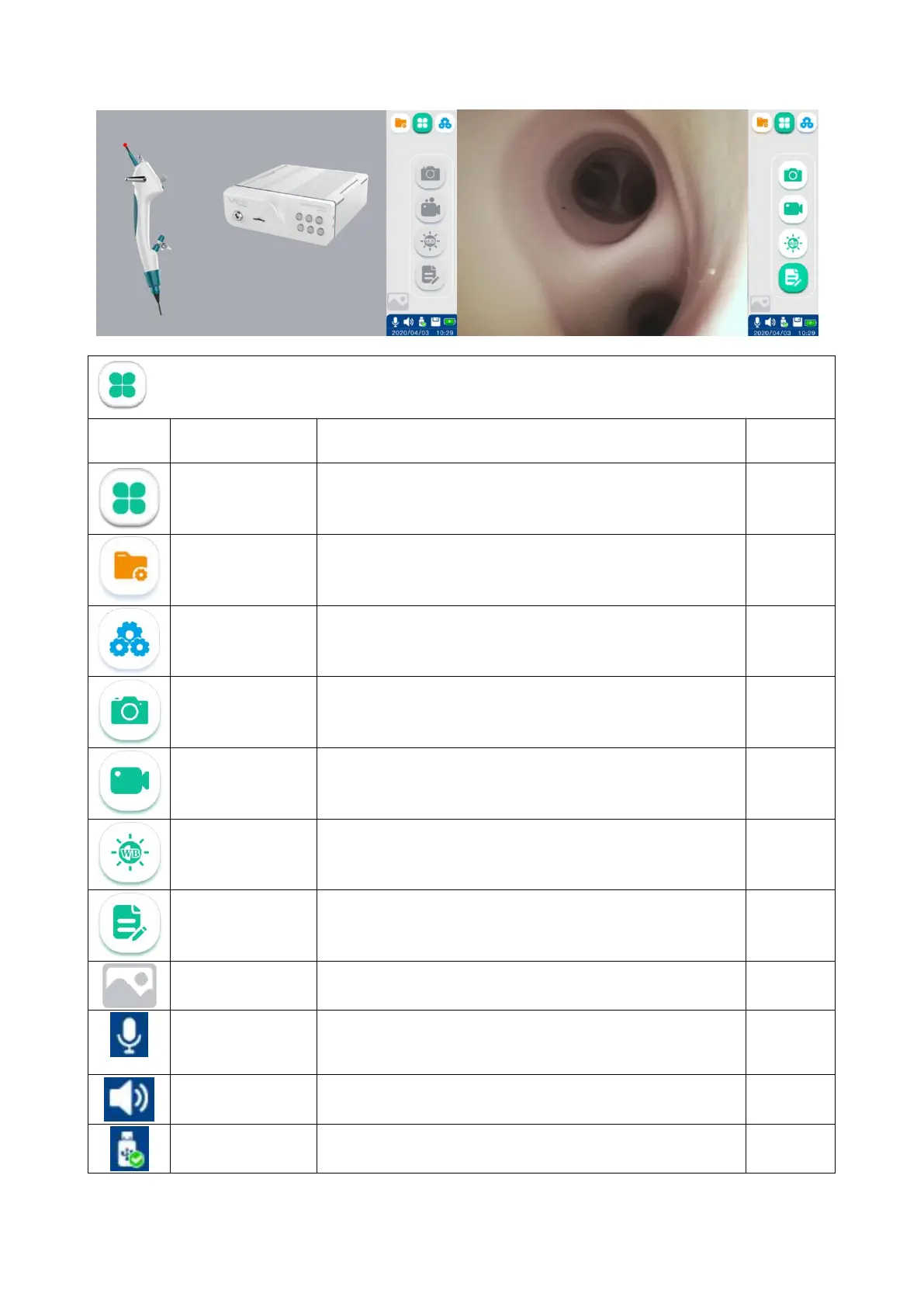 Tap this button or the Vathin endoscope camera button to