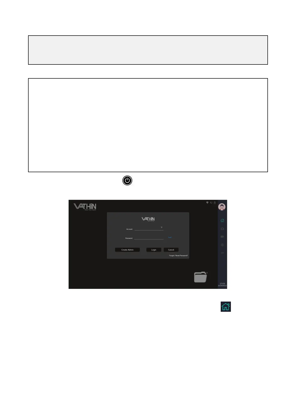 contact your local distributor or Vathin Medical for account and password initialization.