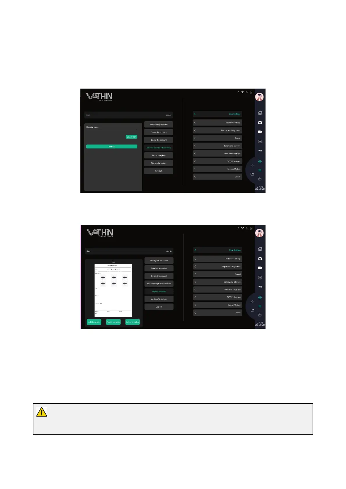 In the user settings interface, modify the hospital name and icon, and click on modify to save the